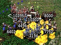 I’ve finally got the hang of battles, so much so that I don’t feel like leaving them to the AI at all anymore. Yesterday during a battle in which the AI tactician had been captured, leaving control of the troops to me, I realized that all that’s required to win a battle is to defeat the enemy’s main attacking or defending force, and that any and all of an enemy’s reinforcements can be ignored. I don’t think the AI tacticians ever take this into account, and when battles are decided without the game visiting the actual battle screen (for instance, with battles between CPU players or battles that I choose not to view), I think the outcome is decided by raw statistics with a random element in there somewhere. Of course, winning a battle in RTK is 90% preparation, anyway (making sure a city has enough troops; using officers with high WAR/INT stats, who have varied and high-level skills, and who can command as many troops as possible), but adopting this tactic lets me be certain things will go in my favor. There are some battlefield techniques that I’ve picked up from watching battles, though, like not moving troops past their line of sight in a turn (so as to avoid surprise attacks), maintaining supply lines, and making sure to occupy outposts and keep them occupied.